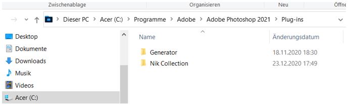 Den Ordner „NIK Collection“ in Ordner „Plug-ins“ kopieren
