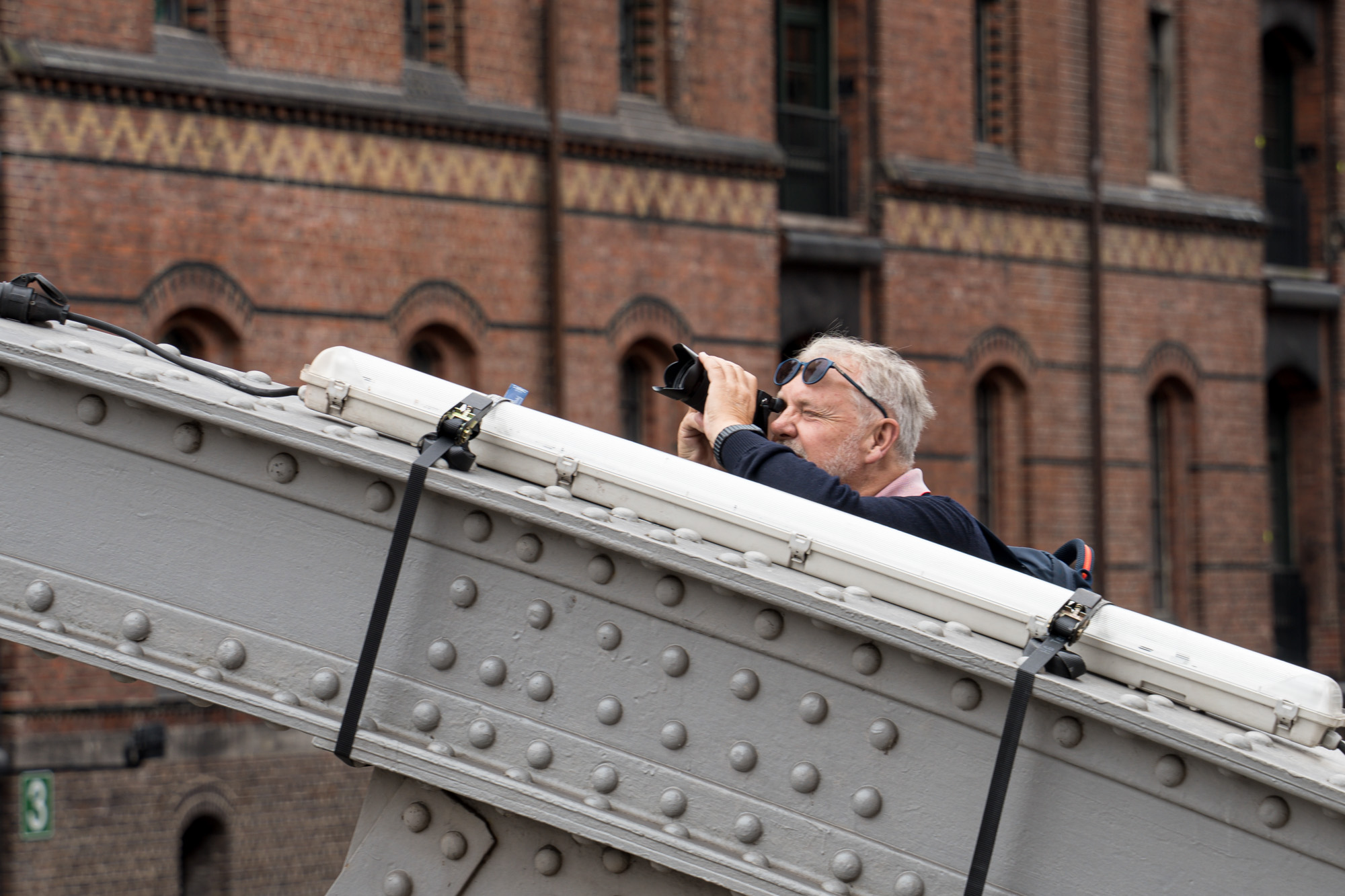 Nach den ersten Aufnahmen in der Speicherstadt begaben wir uns auf die Plaza der Elbphilharmonie, hier boten sich neben dem herrlichen Rundblick auf den Hafen und die umliegenden Bürogebäude auch Detail- und Innenaufnahmen an.